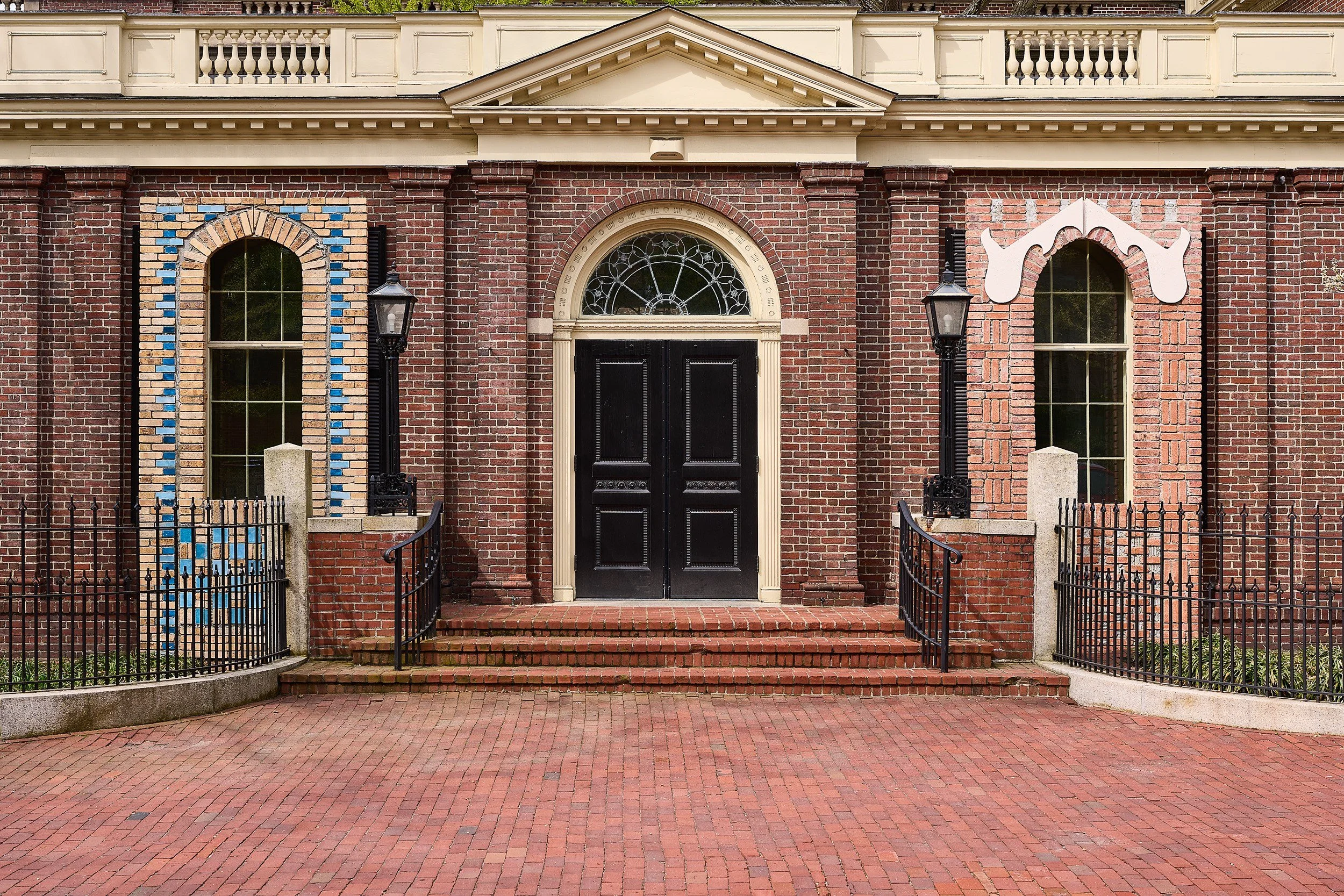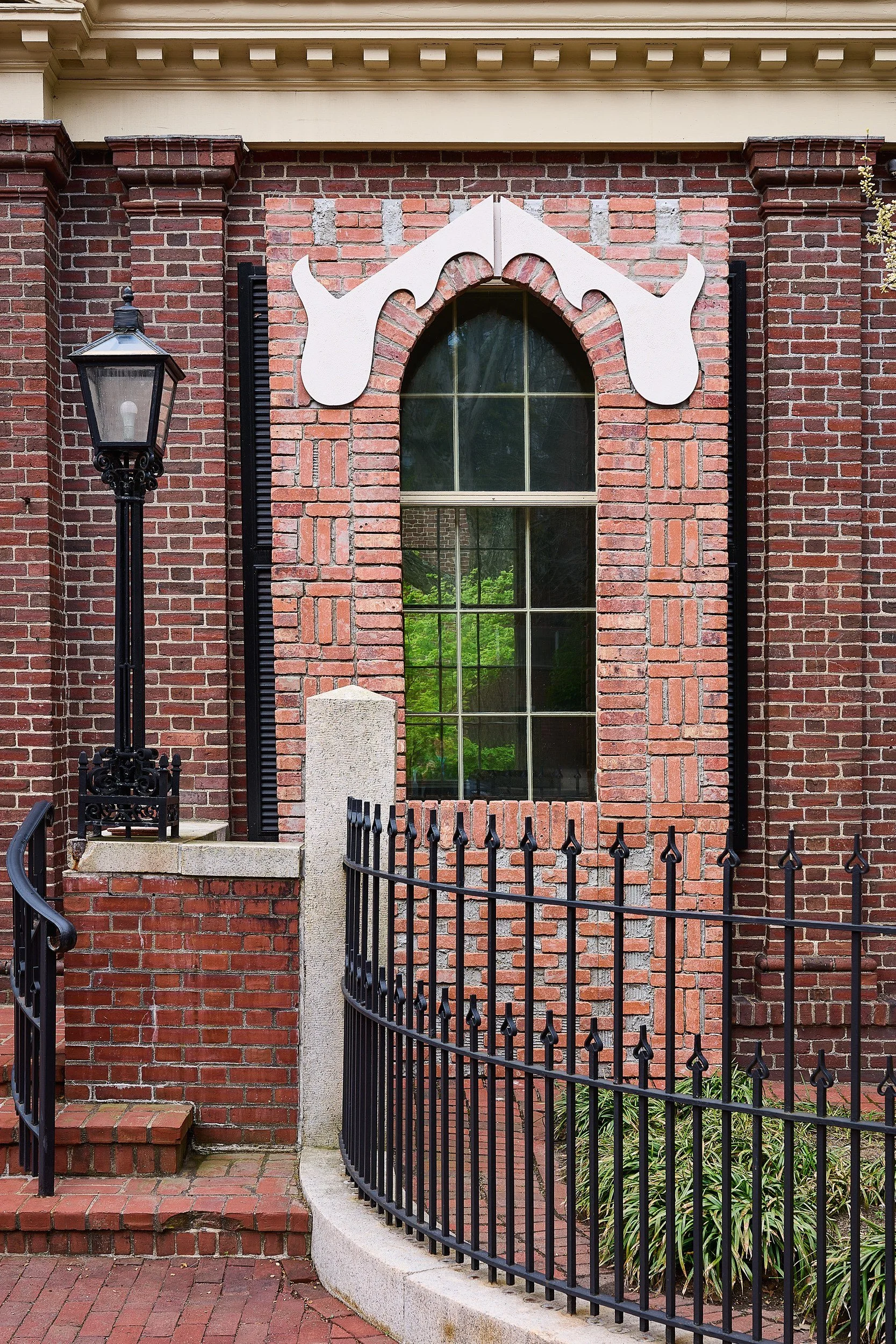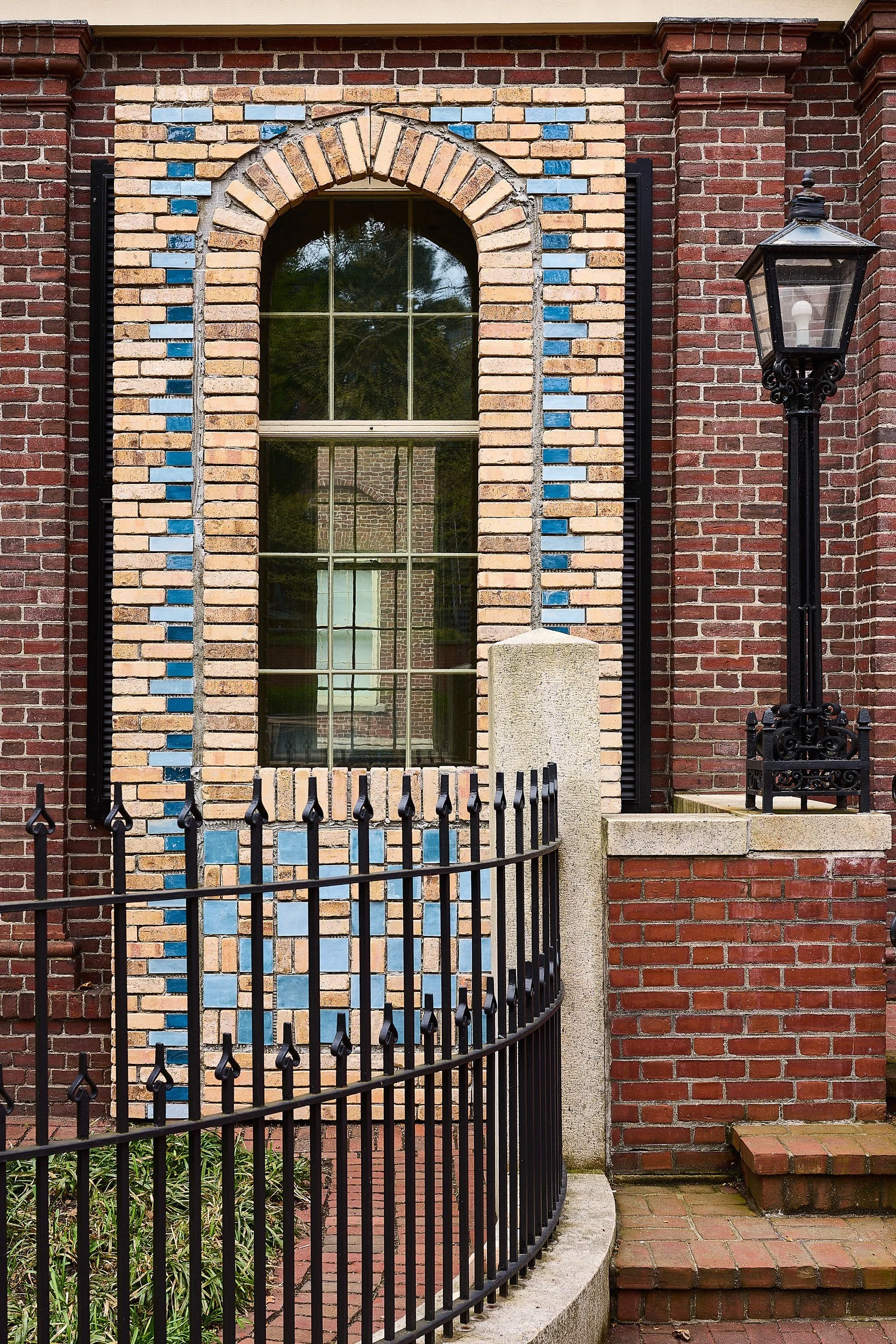 In the 1920s, the RISD Museum commissioned a new building to match the other houses on Benefit Street. The Radeke Building, designed in the colonial revival style, reflected the identity of a museum that privileged Western art and the domestic architectural preferences of Providence’s elite. Nearly one hundred years later, Bricked-Over Windows interrupted the facade of the Radeke Building with two archways inspired by brickwork from around the world. Over one window, a four-centered arch and glazed tiles gestured to West and Central Asian Islamic architecture. Over another window, a flaming pediment and allusion to a terrace nodded to brick complexes in Bagan, Myanmar.
