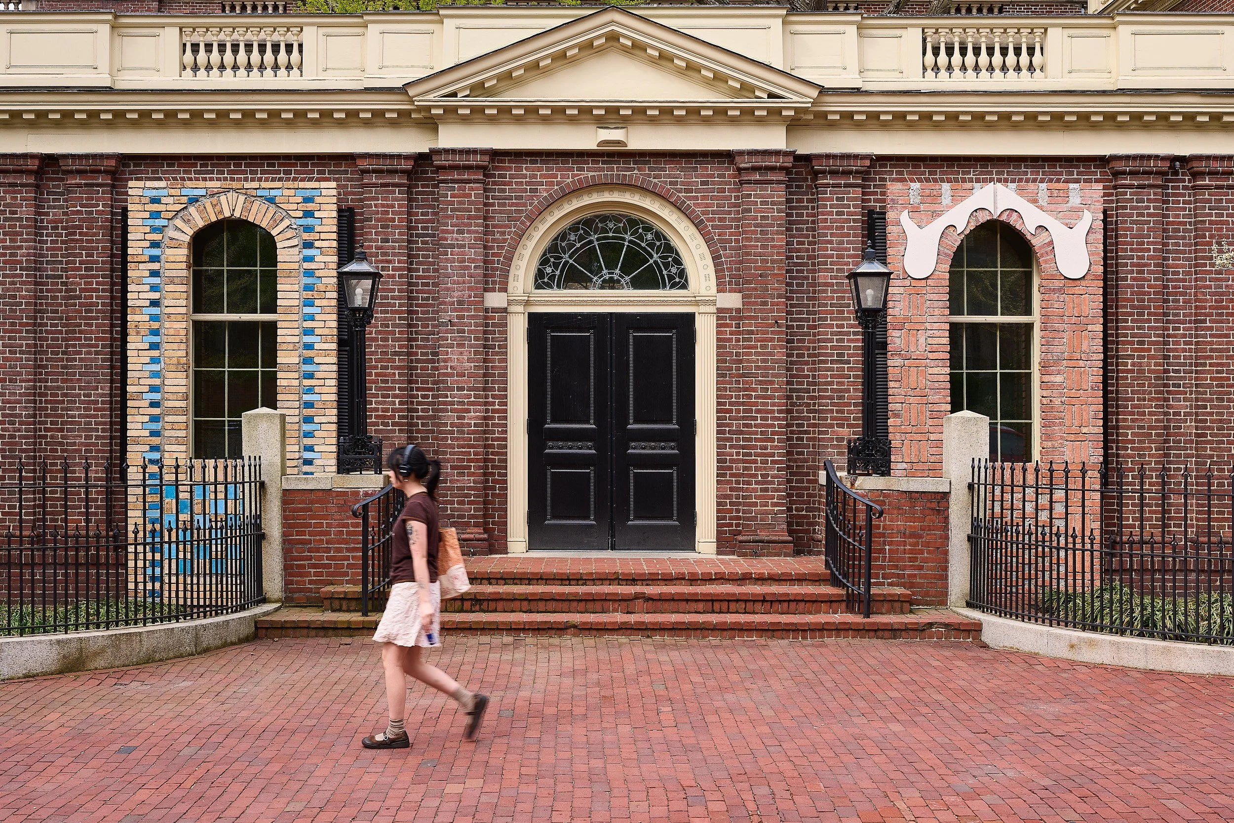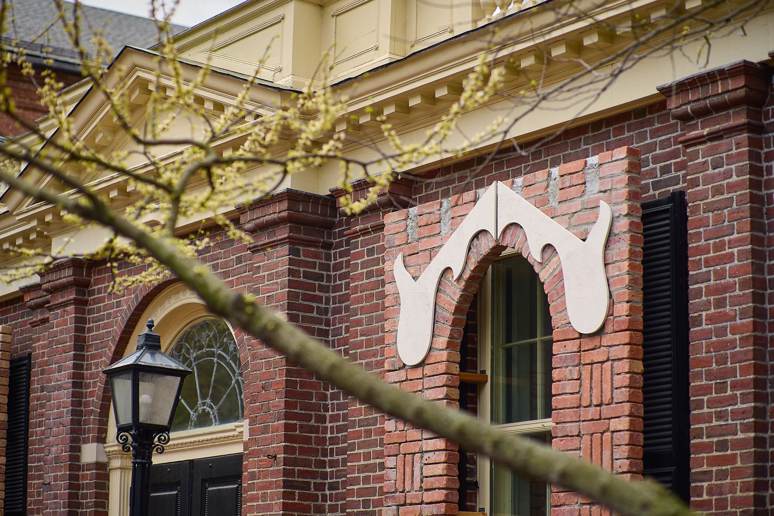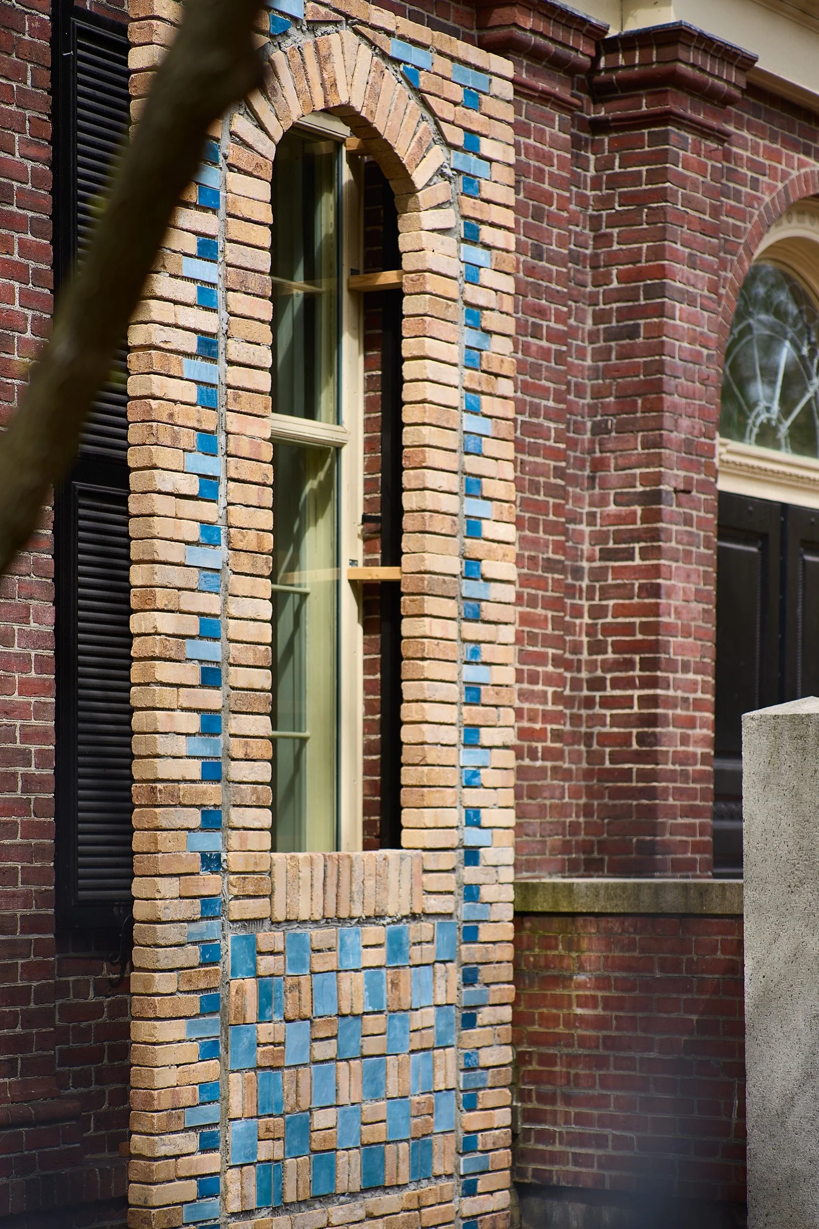 In the 1920s, the RISD Museum commissioned a new building to match the other houses on Benefit Street. The Radeke Building, designed in the colonial revival style, reflected the identity of a museum that privileged Western art and the domestic architectural preferences of Providence’s elite. Nearly one hundred years later, Bricked-Over Windows interrupted the facade of the Radeke Building with two archways inspired by brickwork from around the world. Over one window, a four-centered arch and glazed tiles gestured to West and Central Asian Islamic architecture. Over another window, a flaming pediment and allusion to a terrace nodded to brick complexes in Bagan, Myanmar.