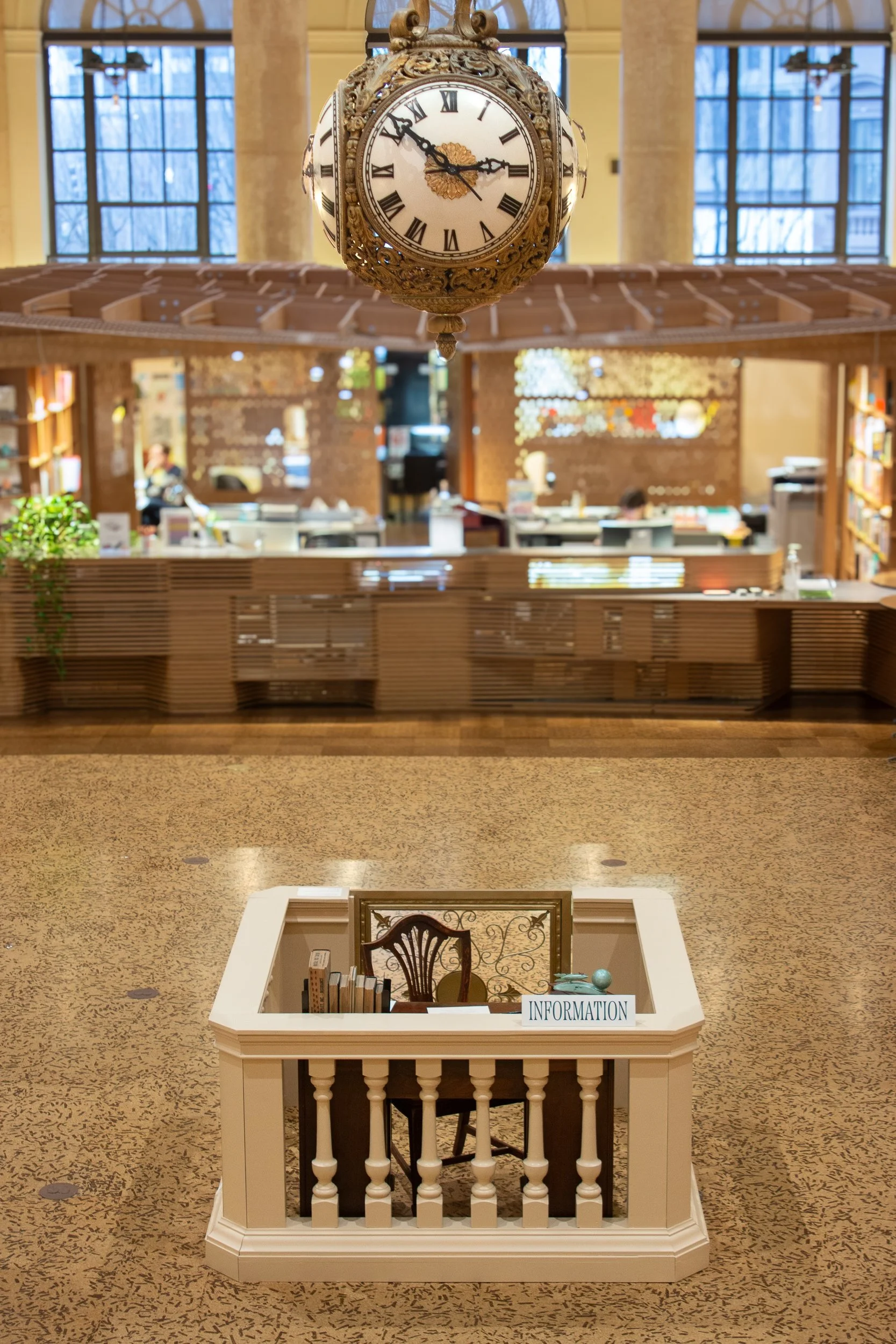 The building at 15 Westminster Street currently holds RISD’s Fleet Library, but it was originally built in 1919 for the Rhode Island Hospital Trust Company, a grand commercial bank. From a desire to inspire a sense of wonder and recontextualize RISD’s spatial history within the larger history of Providence, rose an installation and scavenger hunt that briefly served as a portal to the building’s past.