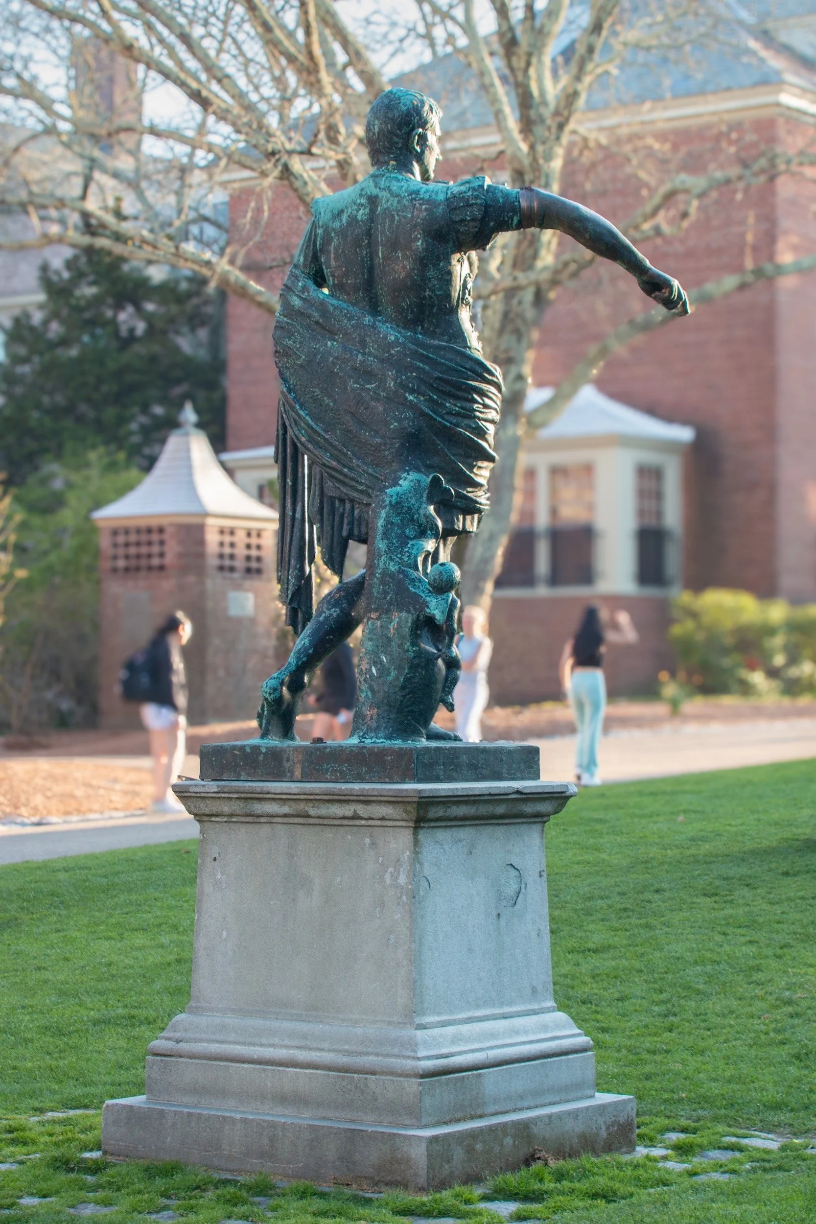When it was unveiled on Brown’s campus in 1906, this statue of Caesar Augustus, the first Roman emperor, represented male virtue and faculty. With his right hand raised in the adlocutio pose, Augustus addressed the troops, seemingly speaking of conquest and victory.